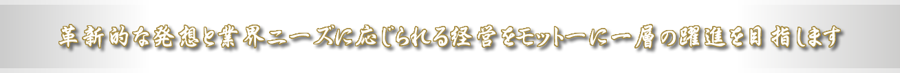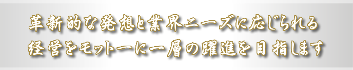 今後とも厳しい経営環境が続く事と予想されますが、引き続き堅実経営のもと、経営基盤の強化を 図るとともに、革新的な発想と業界ニーズに応じられる経営をモットーに一層の躍進を目指す所存です。 どうか皆様方には尚一層のご支援を心よりお願い申し上げます。
